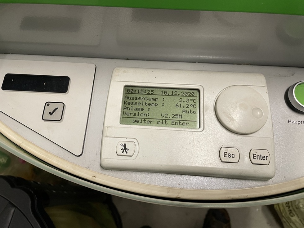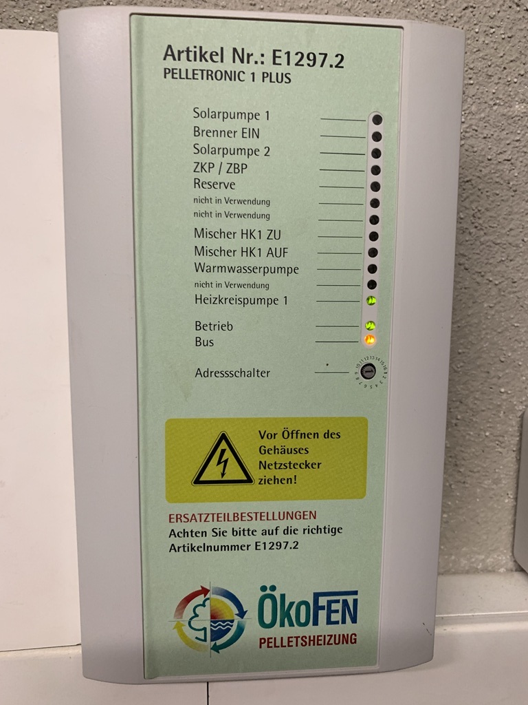 Im Haus ist eine Ökofen Pelletmatic 12 Pelletheizung verbaut, die Pellets werden im ca. 2 Tonnen fassenden Silo aufebwahrt.