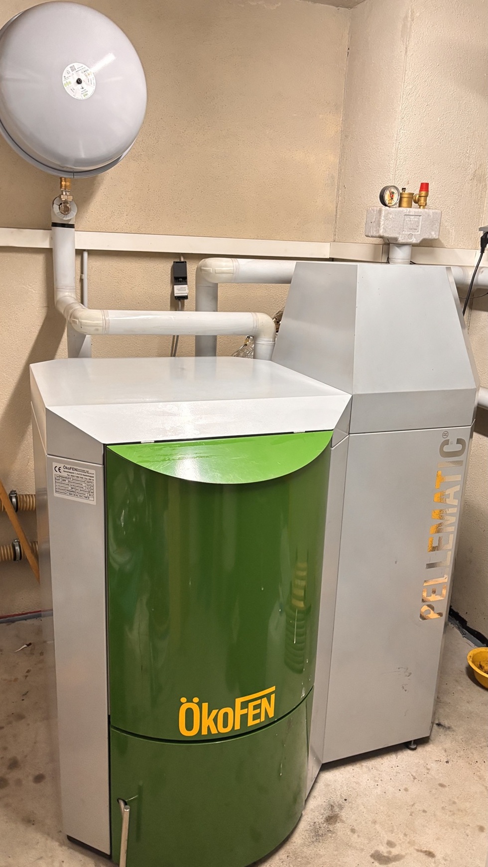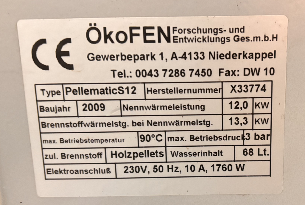 Im Haus ist eine Ökofen Pelletmatic 12 Pelletheizung verbaut, die Pellets werden im ca. 2 Tonnen fassenden Silo aufebwahrt.